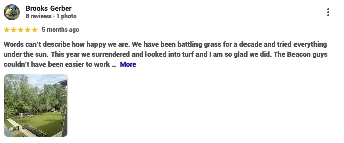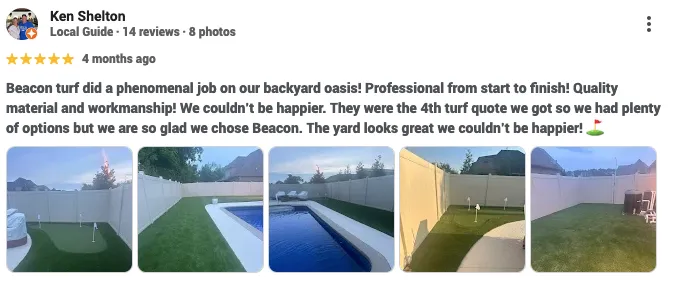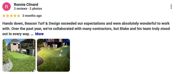 For the past several years, Beacon Turf has been proudly serving the Nashville and Huntsville areas as a trusted artificial grass installer. Our customers consistently share their satisfaction with our work, highlighting our commitment to quality and personalized service. Every review we receive reflects the genuine trust and appreciation of our valued clients.